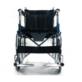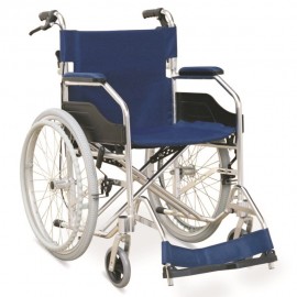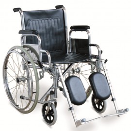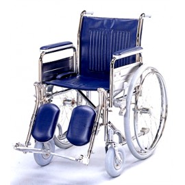 Steel wheelchair, seat width 61 cm, is specially designed with a 24 inch wide seat for obese users (for heavy weights). Comes with a durable chrome plated steel frame. The reliable dual cross-brace wheelchair provides a load capacity of 300 lbs (135 kg). The cushioned upholstery is made of PVC which is durable and comfortable, the 24 MAG rear wheels with solid tires and the 8 PVC front wheel provide stability and comfort to ride.